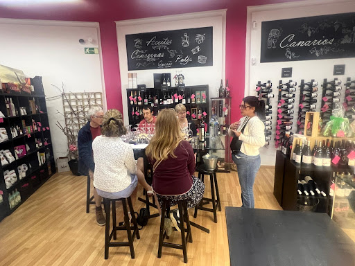 Al tratarse de una vinoteca, está especializada en catas organizadas previa reserva y en la venta de vinos y algún otro producto canario, como quesos. Es decir, no está especializada en servir vino como si fuera un bar, pero tienen unas pocas barricas con taburetes para beber unas copas de vino, así que la pareja a cargo de la vinoteca (creo que eran marido y mujer) nos habilitaron un taburete con sillas para tomar algo.
