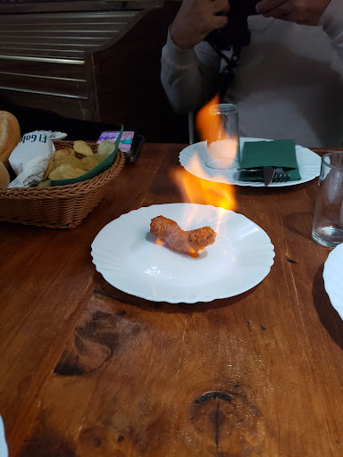 En cuanto a la comida. Para ser un sábado, la extensa lista de la carta general, se reducía a un tercio o menos, lo que se podía pedir en la carta del día. Pedimos: Carne de cabra. Pulpo (por recomendación de alguien mientras hacíamos cola) Un bistec para nuestra nieta. Tras una considerable espera tenemos: Llega la carne de cabra. Es un decir. Mas que carne, eran huesos de cabra. No contentos, el tratamiento en el microondas fue chapucero. Por fuera aceptable y por dentro casi helado. Cogimos al vuelo, porque nadie se paraba a interesarse por nuestras peticiones, a un camarero y se llevan el plato de huesos de cabra. Seguían sin aparecer el resto de lo encargado. Vuelve a aparecer el plato de hueso de cabra. Y claro para que no te vuelvas a quejar de que está por dentro helado, por poco me quemo la lengua de lo mucho que lo habían calentado. El plato de pulpo seguía sin aparecer. El que si apareció fue el supuesto bistec. Digo supuesto porque mas bien podría llamársele suela de zapato. Mi nieta que estaba enmallada, no pudo con el. El pulpo seguía sin aparecer. Mi esposa estaba convencida que se lo habían servido a una mesa contigua a la nuestra. Visto lo visto, altamente probable. También visto lo visto, decidimos terminar cuanto antes. Pedimos un postre de queso asado y le advertimos que si el pulpo no era servido de inmediato, lo anularan del pedido. Al rato, rato no ratito apareció el camarero con el queso. Nos comenta que el pulpo no aparece por ningún lado y que lo anulará de la cuenta. Para estar a la altura de los precedentes, puedo aseverar que nunca he visto unos quesos cortados con tanto desacierto. Finos por un extremo y anchos por el contrario.