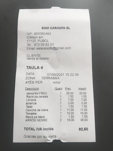 I recently had the pleasure of dining at És! Carxofa, a delightful restaurant. First time I tried to vidit this place the kitchen was already closed. So we did come back by reservation made in advance. Situated in a charming location, the restaurant offers a nice and inviting atmosphere, making it a perfect spot for a relaxed meal. We were in the mid of July and main mistake was to boom the table on terrace, not inside. Even in shadow it was too hot. We tried to ask to move us in, the answer was no free table inside. Later I did check It - there were 4 free tables. But nothing to complain in general. Booking we made were pre-paid and restaurant was kind to move our booking half an hour later because of the traffic.