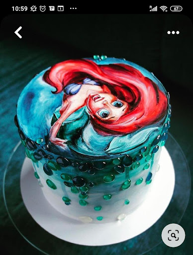 Pedí una tarta alta, con la imagen de Ariel (que yo misma diseñé) y pedí que ocupara todo el diámetro de la tarta. Recibí una imagen cortada con curvas y siendo una tarta plana, con unos colores azules en el buttercream que no ayudaban a integrar la imagen impresa. Adjunto una foto de lo que pedí y me prometieron hacer y así como foto de lo que recibí.