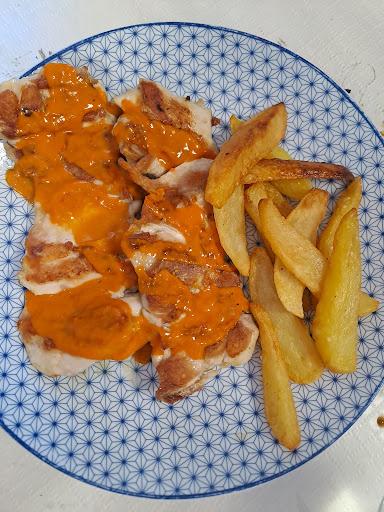 Un excelente bar de carretera. La comida estaba muy buena y nos atendieron muy bien. El rabo de toro estaba exquisito, y también la Merluza con salsa de piquillo. Es cierto que la salsa de las patatas bravas no era lo que esperábamos (salsa rosa y mayonesa), pero igualmente estaba muy rico todo. Pedimos también churrasquito de pollo con mojo picón, que estaba muy rico aunque no lo recomiendo si no te gusta el picante, ya que el mojo estaba un poco fuerte. Arro negro con alioli BUENÍSIMO. Y, para finalizar, la tarta de queso...