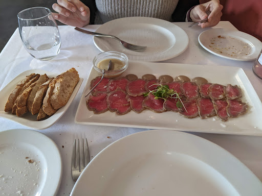 Read moreBuscando un sitio para comer a mitad de trayecto mi pareja encontró buenas reseñas de este restaurante muy cerca de la autovía. Lo mejor de improvisar es cuando, como el caso que nos ocupa, encuentras un tesoro. La atención desde el primer momento fue estupenda. Fuimos atendidos por Berta y Alba que no dejaban que nos faltara de nada. La carta se compone de un menú a compartir y platos sueltos. A pesar de agradecer un menú de fin de semana nos decantamos por los platos que nos llamaron la atención. Pedimos de entrantes tataki de presa y migas al pastor y como platos principales perdiz en escabeche y secreto de cerdo de Teruel. Mientras esperábamos nos dieron a elegir entre dos tipos de pan, a cual mejor y más crujiente y un poquito de aceite para mojar (nos gustó tanto que compramos una botella de esta cooperativa), además de aperitivo nos pusieron un hummus de berenjena que hizo que acabáramos con las existencias de pan. La sensación general fue que cada plato que ponían era insuperable hasta que llegaba el siguiente. Una pena estar tan lejos porque es posible que esté entre los mejores sitios que hemos...
