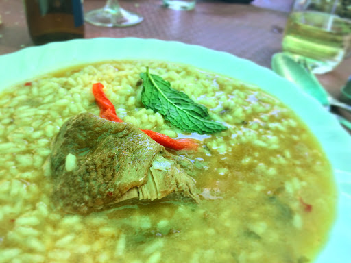 The food is good! It was not amazing. The rice tasted like the rice in paella. It was hard, a little bit raw style.
