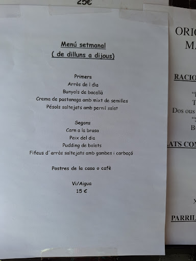 Paramos de paso con un grupo porque el lugar al que íbamos estaba cerrado. El menú de fin de semana cuesta 27€ y la verdad es que pinta bien. No tenía tanta hambre y pregunté si me podían hacer una ensalada -no había ninguna ensalada en las cartas- y así pedir aparte una tapa de sepia. Tomé una ensalada (lechuga principalmente con un poco de salmón ahumado), una tapa de sepia (habría como 100-125gr de sepia troceada con un poco de all i oli), una coca cola y un café. Al ir a pagar, me dijo que me contabilizaría como un menú. Le dije que la ración de sepia era una tapa. Me dijo que las cantidades eran las mismas, me mareó un poco con los precios y finalmente me cobró 30€ (menú de fin de semana+coca cola). Muchos de mis compañeros pidieron un único plato, con mucha más cantidad de proteína animal (200-250gr) y algunos de los cuales venían con doble guarnición (patatas fritas y samfaina). A ellos les salió en torno a los 20€ y si juntas los dos platos que pedí, en el mío había menos cantidad y costes. No quedé nada satisfecho con el precio. De haberlo sabido, aún y no desearlo, habría pedido un segundo plato en condiciones. Confío en que alguien tomará cuenta de esto. Tenemos que volver por la zona los próximos fines de semana... No creo que volvamos ya que no era nuestra primera opción, pero si por un casual volvemos, seguro que pediré un...