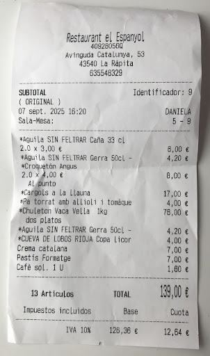 Read moreTuvimos una experiencia fantástica en el Asador Espanyol, donde el trato del personal fue excelente desde el primer momento. Atentos, amables y con muy buenas recomendaciones, nos hicieron sentir como en casa.