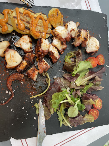 Read moreComimos en la terraza. Era tarde y nos quedamos sin opciones. Desde el primer momento todo con mucha educación, eran problemas….. Antes de daros mesa miraros bien la carta…. Si vais a comer pensad que a las 4 cerramos (no cocina) el local. Sobre la mesa una nota donde ponía que no se pueden separar las cuentas en una misma mesa. En la carta otra nota donde indica suplemento en terraza por cada postre , plato y vinos. Otra donde se indica la consumición mínima. Eran casi las 15:00 h y nos dicen que ya no pueden preparar arroces. Creo que nunca había estado en un local con tantas normas o restricciones. Y si al menos la comida estuviera espectacular, pero no. Un xató, con un romesco aguado y con picadillo de pimiento (reinventando la receta). Y una ensalada de queso de cabra (casi cortado con corta fiambre) es un decir, es porque era muy finita y con lechuga iceberg. La ensalada de queso de cabra más simple que he probado. Bueno no...