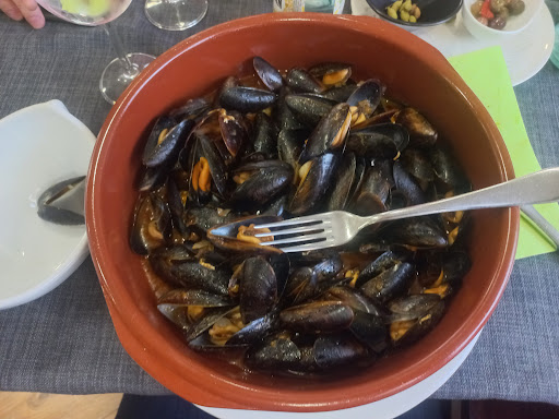 MENJAR: Nosaltres vam menjar Musclos amb romesco (al punt de cocció, molt bons i molta quantitat), sopa de ceba (fantàstica, saborosa i una bona quantitat), espaguetis bolonyesa, i filet de vedella a la graella (carn súper tendra i saborosa, i al punt exacte de cocció). Per postres vam demanar, unes maduixes amb xocolata (bones i en quantitat), crep de nutella (molt i molt bona) i Tiramisú (el millor que hem tastat mai... I n'hem tastat uns quants) Per veure, aigua amb gas pels 4 i 2 cafès.