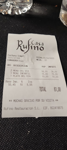 Read moreHemos estado comiendo, previa reserva, mi mujer, mis dos hijos (4 y 2 años) y yo. El ambiente bueno y el personal muy atento. Pedimos dos menús (18€), un menú infantil (que no estaba en carta y que os camarera nos ha cantado en mesa) y un primero del infantil. La comida bien cocinada y sabrosa (quizá demasiado🧂) pero esto es cuestión de gustos. Tuve la mala fortuna de que me tocase un churrasco con bastantes nervios y poca carne... Sin embargo, lo que nos sorprendió fue el precio del menú infantil compuesto por un plato de sopa, dos pechugas de pollo rebozadas pequeñas con patatas y postre. Por ésto nos cobraron 15€ y, lo peor, han sido los 10€ que nos han cobrado por un simple plato de sopa que hemos pedido para nuestra hija. Lo que empezó muy bien, terminó regular. Está claro que salir a comer con niños es todo un lujo y si este es el método para evitar el público familiar, lo han conseguido. En resumen, es un bar con buena comida pero a un precio del todo excesivo y, por supuesto, no apto para visitarlo con niños si lo que buscas es...