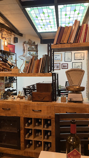 Pues bien, lo normal es que en un buen sitio se junten dos de las anteriores, pero es que aquí, se aúnan las tres y de una forma especial. El local, desde la misma entrada, tiene un aire especial, que te hace interesarte, mirar las pareces, los objetos antiguos colgados de las mismas, y los muebles centenarios que han mantenido y restaurado para darle un aire diferente y muy especial a este sitio. Es una suerte que en un mundo donde todo son copias y fabricación en serie de objetos sin alma ni belleza, haya gente valiente que apueste por mantener la esencia de los sitios y trate de alguna forma de contar sus historias, y esto es lo que ocurre aquí. Su nombre y la placa antigua que adorna la entrada son vestigios de la tienda que antaño fue. Los muebles grandes de madera con contornos y formas talladas a mano decoran con esa solemnidad y belleza con la que lo hacían los objetos de antes. Me quedé enamorado del peso antiguo que tienen decorando una estantería y que le da por si mismo un toque especial al rincón donde se encuentra.