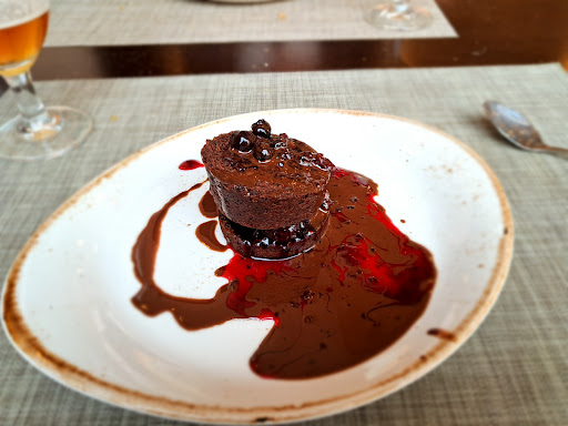 El menú de fin de semana relación calidad-precio no me ha parecido nada del otro mundo. Restaurante amplio, con buena terraza y decoración moderna. Sirven la bebida rápido y el QR te lo traen rápido. Tardaron un poco en tomarnos nota pero luego lo trajeron todo (menos el postre) relativamente rápido. Elegimos menú y de los 3 entrantes el primero estaba muy bueno era un paté con crudités de zanahoria (zanahorias en tiras) y picos de pan, pero el paté tenía poca cantidad. El segundo entrante fueron croquetas de jamón (2 por persona y grandecitas) que estaban muy buenas aunque podrían haber sido variadas xq no a todo el mundo le gustan las croquetas de jamón. El tercer entrante no recuerdo que era pero no estaba mal. En cuanto a los primeros: La pizza caprichosa estaba muy buena, el milhojas que me pedí yo, no me gustó y la fideua de lubina estaba buena de sabor pero había poca cantidad y la lubina no la hemos visto ni degustado por ninguna parte. En cuanto al postre , sin pena ni gloria. En resumen la comida no me ha impresionado pero lo que más me ha disgustado ha sido la atención de la camarera que ha sido desagradable. Al principio la chica ha sido correcta pero el camarero alto y delgado nos había preguntado por los postres y se los hemos dicho pero como faltaba una persona por acabar ha dicho que los dejaba para luego pero como pasaba el rato y no los traían le hemos preguntado a la camarera que pasaba justo por allí, nos ha dicho que ahora venía y cuando ha vuelto, no sé que historia tenía en su cabeza que cuando le hemos dicho que habíamos pedido el postre y no lo traían (de forma educada) se ha rebotado diciendo que ella no es la que está en la cocina preparando los postres medio elevando el tono pero de una forma muy maleducada que nos ha dejado estupefactos xq no le habíamos dicho nada raro ni borde ni para que se pusiera así y no contenta con eso ha ido a la barra se ha puesto a hablar con el otro camarero (evidentemente de nosotros). Cuando nos han traído la cuenta le he dicho al camarero alto que su compañera era un poco maleducada y su contestación ha sido "no es culpa ni vuestra ni de ella es que está estresada"???? Cómo???? Es decir que es maleducada porque está estresada??? Los problemas hay que dejarlos fuera del trabajo y no pagarlos con los clientes y menos con los que no te han hecho nada. El camarero eso sí nos ha querido invitar a un chupito pero hemos...