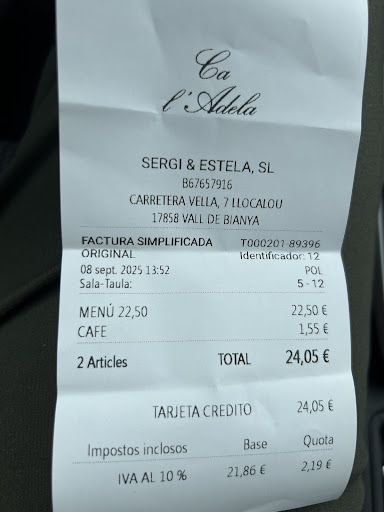 Read moreVam ser atessos molt rà pid i molt amablement. La carta es reduïda però en fas prou, vam demanar: cap i pota que estaven molt bons, patates braves que em va agradar molt la salsa i calamars a l'andalusa que eren també prou bons, de segon: torrada amb escalivada i formatge de cabra era bona, torrada amb sobrassada i brie aquesta no em va agradar tant un pèl massa eixuta falta algo que la faci més llaminera, xurrasco a la brasa i xai a la brasa, bons. Les postres es concentren en una bandeja plena de pastes de pastisseria i tal, no hi ha més opcions, pastÃs o pastÃs. Una pena que no les facin ells. El preu és prou acorde al...