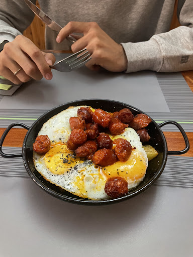 Read morePara mí ha sido el mejor sitio para comer en Barruera. Tienen terraza cubierta y unas mesas en el interior. Fuimos varias veces y salimos siempre muy satisfechos. Tiene una carta no muy extensa pero variada y todo lo que probamos estuvo muy bueno, es comida casera. Destacaría las patatas bravas (patatas naturales y una salsa deliciosa), el hummus (que en la carta no pone nada y pensamos que era de garbanzos pero es de tomates secos...buena cantidad y sabor muy bueno), los huevos rotos, las hamburguesas que son bien contundentes, el pulpo y la tarta de zanahoria (deliciosa aunque está no me pareció casera, pero bueno, gran proveedor ☺️)... Bueno, casi todo lo que tienen está genial. Las croquetas sin embargo no nos gustaron especialmente...son caseras hechas por ellos pero yo no las volvería a pedir. El servicio muy bueno, chicas muy educadas aunque una de ellas un poco...