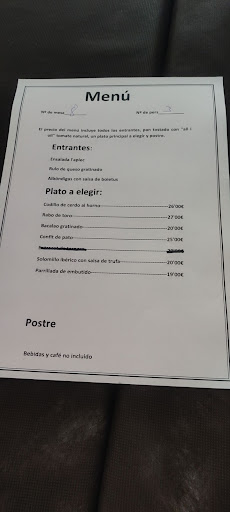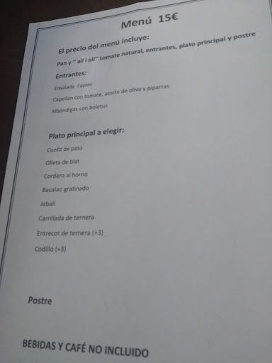 Read moreAcudimos a este restaurante con la intención de probar uno de los platos típicos por excelencia en "Vall de la Gallinera" el jabalí. Recomendamos solicitar mesa con antelación. Nosotros fuimos día festivo de la Inmaculada Concepción y se siguió perfectamente el protocolo Covid y se cumplía con la distancia de seguridad. Comimos de menú. Unas clásicas tostas con all i oli con tomate natural de entrante. De primero queso con manzana, melocotón y mermelada Y de plato principal el estofado de jabalí. Carne muy parecida a la del cerdo, pero más sabrosa, aromática y textura más dura. De postre tarta de galletas con chocolate....