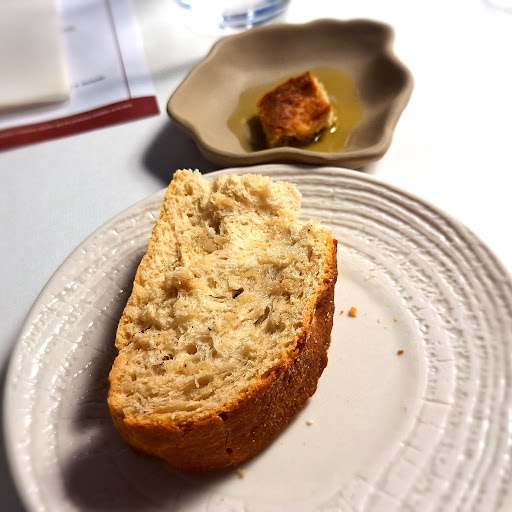 Comimos 🍴 El menú empieza con el servicio del pan y un poquito de aceite y tres snacks que son tres bocados correctos, pero que tampoco llaman la atención. 🍴 De las entradas, el primero fue una ostra glaseada que estaba muy rica. 🍴 La siguiente entrada fue gambón, pulpo y limón, que para mí, fue la mejor de las tres entradas. 🍴 Lo siguiente fue un all i pebre de vieira y pollo y no me acabó de convencer como me suele suceder en el 90% de los casos con estos platos de mar y montaña. 🍴 La última entrada fue un canelón de setas y queso, una mezcla de sabores que no falla y como es normal tampoco falló en esta ocasión. 🍴 El primer plato de los principales fue un arroz de alcachofas y sepia, verdaderamente magnífico. 🍴 Lo siguiente fue un rodaballo con toques crujientes que también nos entusiasmó.El mejor plato del menú. 🍴 Y por último un trinchado de vaca vieja con una parmentier de trufa que también nos gustó mucho.