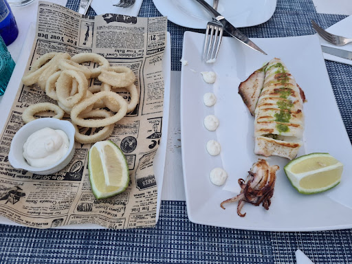 Read moreNous sommes venus ici car c'était le restaurant de la plage qui donnait l'impression de proposer des produits frais, moins industriels que d'autres (le moins bondé aussi mais vous allez voir, on sait pourquoi) Une fois assis on découvre qu'il faut consommer 25€minimum / personne sans quoi c'est 3€/personne de service. Et bien sûr plein de plats sont à 23€/ 24€ sinon ce n'est pas drôle... Le restaurant joue clairement la carte d'un restaurant qui ne veut pas de clients qui bloquent une table juste pour boire un verre mais ils veulent des gens qui consomment vraiment et dépensent. Si vous venez vraiment manger pourquoi pas car certains plats sont bons , j'ai vu des plats de riz passer qui avaient l'air vraiment top mais si c'est juste pour boire passez votre chemin.