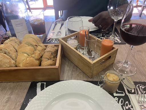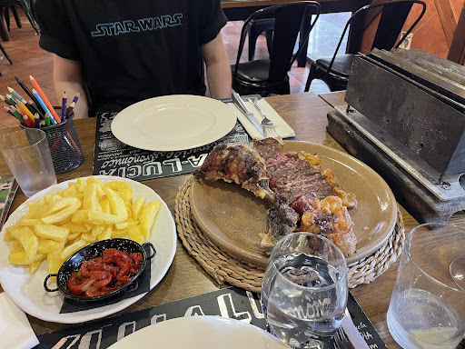 We had lunch here on a Tuesday at about 1pm it was fairly quiet until about 2 and then the restaurant was busier. There are 2 options on the menu which are cost per head 36 euro or 41 euro. We had bread with pâté and tomato gazpacho this was so nice with 3 types of bread, beef croquettes as well as beef carpaccio with olive oil ice cream for starters, t bone steak which came with a coal cooker and beef cheeks for main, for dessert we were recommended what was like a bread pudding all of the food was delicious the beef carpaccio with olive oil ice-cream was out of this world delicious. The servings are large and could be shared if you are not that hungry. We just had one desert to share as well were so full. The staff were so welcoming and helpful did not speak much English but tried to help as much as they could, beautiful dining room looking out to the garden....