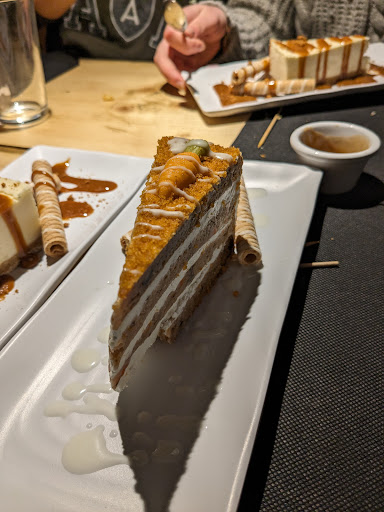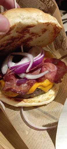 La verdad que no me esperaba encontrarme un restaurante de este estilo por Laguna de Duero, me lo recomendaron y la verdad que quedé impresionado. Me resultó bastante fácil reservar una mesa para cuatro a través de internet, a la llegada me encontré un restaurante amplio y atractivo, con una decoración sencilla, pero que hacía apetecible comer allí. El servicio fue atento con nosotros en todo momento y rápido. La carta tiene una variedad amplia de platos pero no demasiado extensa que te pueda apabullar a la hora de decidirte, incluso tiene un pequeño apartado para vinos, algo que me sorprendió. Nuestra elección para cuatro personas fue un entrante, una hamburguesa para cada uno y tres postres, siendo una cantidad justa y con la que acabamos satisfechos. En cuanto al entrante, consistió en unas patatas fritas de corte ondulado acompañado de salsa, queso cheddar y pulled pork, siendo este último escaso y encontrando algo seco su textura, pero siendo el plato en su conjunto apetecible. En cuanto a las hamburguesas que seleccionamos, fueron tres de ellos de estilo clásico con diferentes ingredientes cada una, y la restante una burger de costillas, siendo su ingrediente principal la carne de la costilla mechada con salsa barbacoa, la cual resulto muy sabrosa y divertida de comer, aunque para mi gusto le hubiera añadido una hamburguesa de ternera de unos 90 o 100 gramos para no dejar todo el peso de la hamburguesa en la costilla y así darle más jugosidad al conjunto. En cuanto a las otras hamburguesas restantes, la carne llegó al punto correcto que se pidió y el conjunto con el resto de ingredientes más que perfecto, la única pega que le pondría, sería que el pan me resultó algo seco en la mordida a pesar de ser brioche. Mi recomendación, sin duda, la hamburguesa con carne de Vegabuey y con el punto de la carne poco hecha, sin duda espectacular. Y para finalizar, degustamos la tarta de queso con toffee y la tarta de zanahoria. La tarta de zanahoria me sorprendió en cuanto a textura y sabor, no resultando nada empalagosa, cosa que la de queso si que me dió esa sensación. Para mi gusto, bañar la tarta de queso en toffee resta mucho el sabor del ingrediente principal de este plato, el cual es el queso, llegando a resultar algo cansado conforme avanzas con el postre, sugiriendo bajo mi punto de vista y experiencia que se rebaje la cantidad de toffee en el plato o se sustituya por otro que acompañe mejor. En definitiva, me resultó una cita muy apetecible y la cual repetiré en breve para degustar la otra parte de la carta ofrecida. Lo...