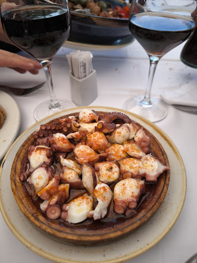 Read moreFuimos a cenar mi pareja y yo a este restaurante en medio de la nada, por las halagüeñas reseñas que habíamos leído por aquí. La verdad que todo dentro de lo esperado: Llegamos y el camarero no nos enseña carta ni nada. ¿Qué queréis comer? Lo teníamos claro. UNA ración de pulpo y UNA de Carne de richada. El servicio muy rápido, nos trae la ración de pulpo y sorprendidos vemos que se trata de una abundante ración, la cuál comimos gustosos (quizás le faltaba algo de pimentón). A continuación nos trae un pedazo de cuenco con la carne (que por cierto no me pareció ninguna maravilla), el camarero bromea con que si vemos que es mucho, que comamos la carne y dejemos las patatas. La verdad que quedamos a reventar, habiendo disfrutado pensando que aquí con la comida son muy generosos y cuidan que la clientela se vaya satisfecha. Hasta pedimos una porción de tarta de galleta que nos resultó deliciosa.