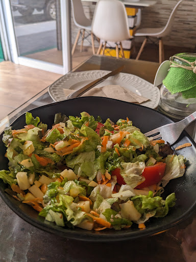 Read moreI ordered the garden salad which came without red cabbage - was lovely and refreshing (maybe a little too much salt for me personally). I also had the seasonal croquettes which were like tasty little vegan fish cakes! They came with a blue spirilina sauce which actually really complemented the croquettes. Very friendly chef taking orders and gave me recommendations. I read someone's review about little leg room from tall people and have to agree. I'm 5'10 and had to put both legs to one side as the base of the table is very wide. Good place for vegan fast food and it also said they support local farmers which is...