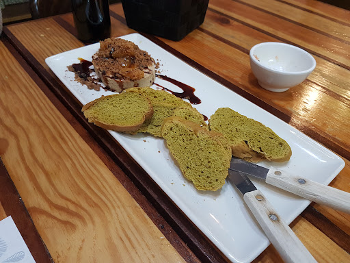 My self and my wife called in here and were we delighted. A lovely restaurant and the first thing we were asked had we a reservation, a good sign. Lucky they had a table available and we sat down. The restaurant quickly filled with locals, mostly young locals, and the waiter Daniel and the chef coped very well. it's menu is aimed towards sharing as most of the parties around us did. I was hungry but Rita was not. We ordered Chicken brocettes, 4, and I ordered the rib eye steak. The brocettes were 4 skewers with 2 large pieces of chicken and vegetables on each and the steak was delicious and perfectly cooked as ordered, rare. The chips were unusual, thin sliced potatoes deep fried and, we ordered an extra portion. We are in town for another few days and hopefully will call back if not see you next time. a little gem worth...