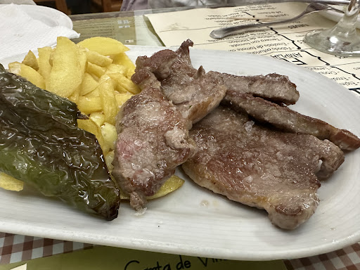 Además entre sus platos más destacados podrás encontrar: -Caracoles en salsa. -Boquerones y arenques. -Callos, ropavieja y fabes. -Rabo de toro. -Cerdo frito. -Secreto ibérico. -Solomillo al gusto. -Huevos rotos con chistorra. -Lomo alto y entrecot. -Tacos de pescado. -Calamares Saharianos. -Huevas fritas. -Revueltos de gulas y gambas o gambas y calabacines. -Codillo en su jugo. Y un largo etcétera.