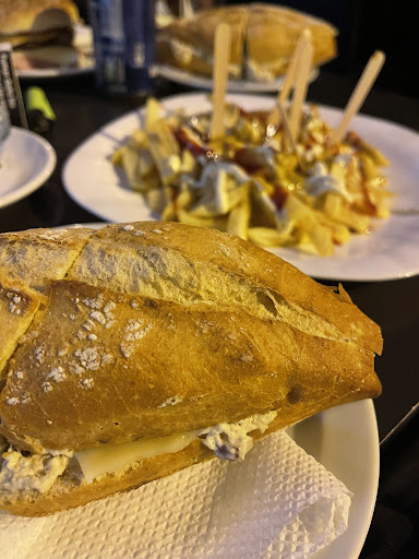 Yo no sé cómo ese bar está abierto fui por primera vez ayer y me encontré un pelo en un bocadillo que me pedí segundo tardo unos 40 minutos en hacer dos bocadillos y dos sándwiches el camarero atendiendo y con el móvil en la oreja hablando por llamada la otra camarera le dan la comida y no sabe ni a donde llevarlo y cuando se lo traes le preguntas que es y te dice que no sabe encima le digo lo del pelo al camarero y se queja como que le molesto que se lo dijera ni disculpas me pidió pienso que es un local el cual sale adelante porque es el único por la zona pero no se lo recomiendo a nadie hay se cocina sin guantes sin nada para cubrir el pelo y encima el camarero fumando en la puerta del bar y todo el mundo esperando a que termine para que les lleve las cosas tardo otros 10 minutos en traerme la cuenta cuando él no estaba haciendo nada estaba con el móvil hablando mientras yo esperaba a que me diera la cuenta pero bueno que me voy a esperar de una persona que no sabe lo que es el respeto asía los clientes y la educación (NO LO RECOMIENDO) MALÍSIMO PD: tengan cuidado con los precios porque parece que es un local de lujo 19€...