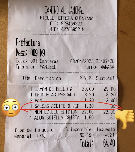 Have you ever been charge €1,30 for extra virgin olive oil?