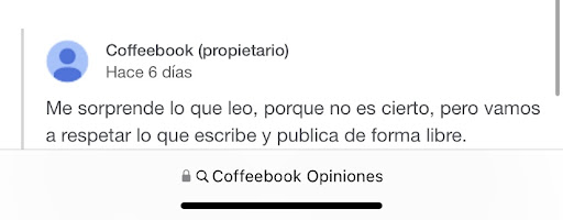 Hacia algunas semanas que iba a comprar temprano en la mañana sobre las 8 unos cafés o manzanillas a este lugar, en uno de los días compré pero volví a pedir una manzanilla, tenía prisa y le dije al camarero que me iba que no la quería porque no podía esperar por ella ya que había gente delante, lo normal cuando no puedes esperarte. Hoy día Martes 13 de agosto vuelvo a esta cafetería a comprar los cafés, y la mujer que por lo visto es la dueña o la encargada me dice que porque no me lleve la manzanilla? Que porque le deje la comanda abierta, yo me quedé en shock porque nunca en mi vida me había pasado algo así ni lo había oído nunca, que en una cafetería te llamen la atención por no haberte llevado algo que al final no pudistes y que sin habértelo puesto todavía le dijistes que no podías esperar por ello que lo dejará. Esta mujer se puso energumena, maleducada y déspota diciéndome que le dejé la comanda abierta, donde se ha visto eso??? Me dijo que no volviera la muy malcriada, que no se preocupe que esa cafetería no la vuelvo a pisar más nunca. Donde se a visto tanta DESFACHATEZ humana!!!!!!!!!! No se si es la dueña o la encargada la que me ha contestado a la reseña que he puesto a esta cafetería, sin ninguna razón. NUNCA he visto lo que alli me pasó que te digan que porque les dejastes una comanda que todavía ni siquiera estaba puesta y a la que le dije que la dejara por RAZONES de trabajo esa ser que está allí de encargado o dueña fuera tan PÉSIMA, poco EMPÁTICA, MALEDUCADA, PREPOTENTE, ETC.... DONDE SE HA VISTO QUE EN UNA CAFETERÍA TE DIGAN TODO LO QUE ESTA SER ME DIJO POR NO LLEVARME LA MANZANILLA VARIOS DÍAS DESPUÉS! ESPERO ALGÚN DÍA TE HAGAN LO MISMO!!!! Y ENCIMA TIENE LA PERSONA QUE ESCRIBIÓ LA CONTESTACIÓN DECIRME QUE LE APENA ESTO, TIENE MUY POCA VERGÜENZA!!! Y ENCIMA MINTIENDO, LO NORMAL PORQUE NO LE INTERESA!!! Que quede claro que yo nunca he llamado a este negocio y sí es así que me denuncie, llamé a la policía local porque le pedí la hoja de reclamaciones y no me la quería dar!!! Y cuando pongo una reclamación por aquí es porque se la merecen y he puesto muy poquitas!!! Y LA QUE LE HE PUESTO SE...