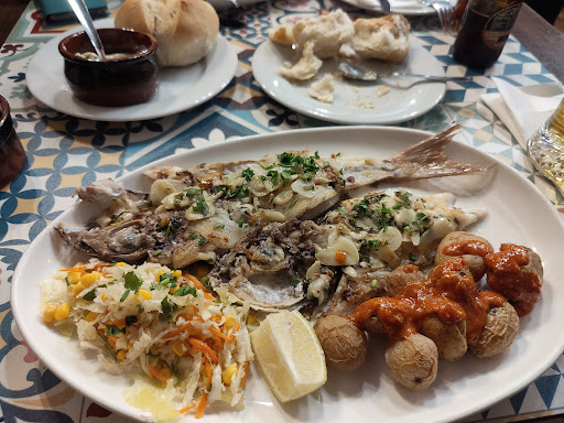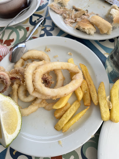 Read moreLlegamos hoy a las 14:10. Había llamado un poco antes para reservar, me dijeron que no aceptaban reservas y que al llegar había que coger número y esperar. Llegamos, cogimos número y esperamos unos 15 min. Fuimos dos con un cochecito de bebé. Nos tocó mesa fuera, pequeña, sin mantel, servilleta de papel. Pedimos de entrante media de croquetas de pulpo y gambas y media de calamares, y de principal una ración de cherne para compartir, puesto que ya no tenían lubina. Los tres platos llegaron a la vez, desafortunadamente. Los calamares ricos pero salados en exceso, al igual que las papas fritas que los acompañaban (lo pueden ver en la foto). Los croquetas no me dieron más, también con papas fritas de guarnición, demasiado saladas. Nos pusieron 5, cuando en teoría venían 6. Lo peor fue el cherne. Era pequeño, con demasiadas espinas y poca carne, y además insulso y en algunas zonas algo crudo. Me corrijo, insulso no, realmente sabía a ajo, porque venía con no sé cuántos dientes de ajo picados por encima. Pedí que se lo llevaran y quitaran todo el ajo y las espinas, quedando el plato en unos pocos trozos de pescado que de fresco no tenía nada. No sé si tuvimos mala suerte o qué, pero es justo el tipo de plato que no te apetece encontrarte en un restaurante de pescado. Yo sentiría vergüenza si presentara a un comensal un plato así. Lo que más me dolió fue los 27€ que costaba, cuando un plato así no debería costar ni la mitad. Nos fuimos sin pedir postre. Lo único positivo fue un cantautor que llegó justo cuando nosotros y durante un rato tocó varios clásicos españoles con la guitarra, haciendo un poco más soportable el mal trago de la comida. Mejor olvídense de este sitio y prueben en algún otro de los varios que hay cerca...
