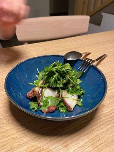 The service was very good. The waiters were very friendly. The place is small. Only has like 4 tables and a small bar. So if you have the misfortune of having loud people next to you, it gets noisy. The decor is bland and uninspired, we were placed in a small white cubicle that was almost clinical. White plastic panels separated us from others. As for the food, the main attraction is a six course menu that trickles out of the kitchen, slowly. First we were given some pork gyozas that were rather insipid. Next an octopus salad, that one again was pretty bland. Next some deep fried tofu, this was pretty nice. Tofu itself is tasteless but the sauce made up for it. Next we were given 4 nigiris. Salmon and different types of tuna. Very fresh, albeit small. Very tasty. Next came 4 tuna makis, these were absolutely delicious. Yummy. I could eat these all day!. Next some noodles with wild shrimp. Also very tasty. And lastly, a mini hamburger that was also really delicious. All portions were rather small, and took a lot of time for them to all come out. At the end of the meal I was left craving more food. After all, 91€ for 2 people is nearly double that we normally pay for eating out around town. Last but not least, me and my partner both found the music annoying, something more downtempo, lounge or chill, or even better, Japanese music would...