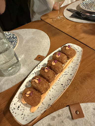 What a lovely place, tastefully decorated, mellow jazz in the background, and pleasant staff serving food that oozes love and care. Genre can be best described as fusion, accentuating on Spanish. The croquettes were very crispy, perhaps too crispy for me, on the outside and creamy on the inside. The salmon was cooked to perfection, Japanese style, and served on a bed of couscous. The black rice looked delicious, but this will have to wait for the next visit, and unlike the majority of restaurants, they offer single portions of their...
