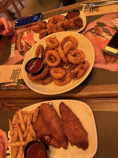 The food was truly abysmal. The onion rings were nearly burned, teetering on the edge of being inedible. While the chicken wings and tenders were passable, the chicken burger was catastrophically overcooked, with a crust so hard it was almost impossible to bite into. The patty itself, along with the entire burger, was unbearably dry, rendering it completely inedible. The accompanying fries were equally overcooked and lifeless. As for the vegetable burger, it was a dense, unappetizing brick that no person should be expected to consume.