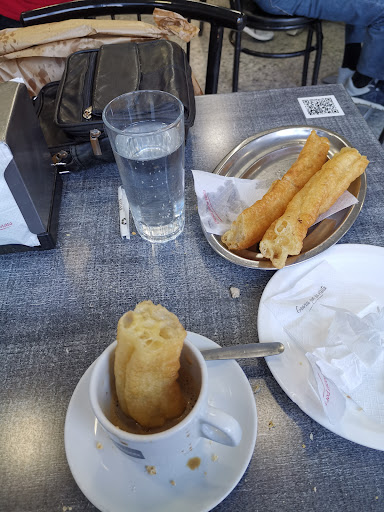 We have been here multiple times to get churros and these are one of the best and freshest churros there are. For the price you get a lot of churros and great coffee. The leche y leche is definitely something I can recommend ordering since it made me fall in love with this type of coffee. Next to the amazing churros and coffee I can also recommend getting a lomo pulgita. The lomo tastes great and the bread is amazing. The place has an amazing atmosphere and it is always fully packed with locals which sometimes makes it a bit harder to navigate as a non-local since the waiters don't speak...