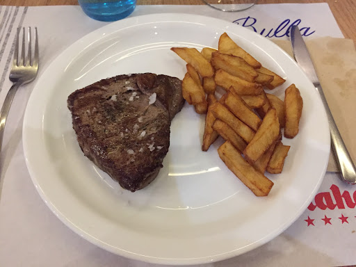 We ordered fried sardines w/lemon, oxtail burger and tenderloin w/padron peppers and fries. Drinks came out, and sardines were nice. Then disaster insued, when my girlfriend got her tenderloin, served with a few peppers, and the tiniest amout of fries. It was super tough/sinew was very present. We sent it back, hoping it was a mistake (the waiter told us, it was “strong meat”, as the reasoning, it was tough 😏?!?). My oxtail ‘burger’ followed… it was a small bun, with an even smaller ‘patty’ of overcooked oxtail, smothered in dressing, and with a spoonful of near-burnt chips…