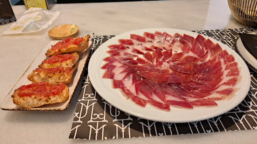 I ordered the Iberian ham and a Coca-Cola. The ham was very much worth the money. What stood out was the staff's assistance – a member at the bar helped us navigate the online menu, making the ordering process smooth and easy. In the end, our bill amounted to €52 for two people, including three drinks and two meals.
