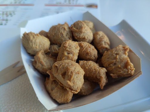 I naively expected chicken with vegetables for about five euros. I got a small helping of 'chicken nuggets' made from vegetables. I was then asked to choose a dip.