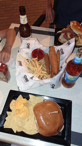 Nachos OQB = 5.5 (Sinceramente queso cheddar, guacamole, salsa barbacoa y quizás algo de queso por encima, uff dejan mucho que desear por su precio excesivo 5.90€, lo que diría unos nachos básicos en cualquier otro lugar.)