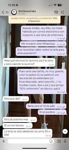 Encargué mi tarta para mi cumpleaños un sábado (por teléfono) para ser recogida un miércoles. Desconozco si la persona que me atendió era empleada o la dueña del negocio. Me informó que para formalizar la reserva debía hacer Bizum al número y enviar justificante, y así lo hice, y confirmó que lo había recibido. Me informa que el horario de recogida de la tarta es el miércoles de 15 a 17. Mi hermano me hizo el favor de recogerla, dándole los datos, y avisando yo al negocio por WhatsApp. Al llegar (a las15 y poco) le pide los datos, parecían no saber a qué reserva se refería, hasta que salió la dueña y volvió al interior a revisar el móvil. Le dijo que volviera en una hora, (sin admitir que se había olvidado del encargo). Al abrir la tarta veo que no tiene los “botones de gelatina típicos en esta tarta”. Mas sorprendida quedé cuando la partí y vi que dentro del bizcocho tampoco había ninguna capa con este sabor. Es una pena esto, pues realmente la textura y sabor de la tarta es muy buena, pero no hicieron la receta que pedí. Al manifestarlo en tono cordial, vía WhatsApp, la dueña muestra una actitud a la defensiva, sin disculparse, y diciendo que ella siempre ha hecho esa tarta así, que si quería “mermelada” debería haberlo dicho…No tengo por costumbre en ningún negocio al que acudo, decir cómo deben hacer su trabajo. Añado tres imágenes, lo que pedí, y lo que me llegó. Una pena, porque creo que trabajan muy bien el producto pero no se comunican bien, y no tienen un buen trato con el cliente. Un poco de humildad, alguna deferencia (un descuento, algún detalle,..) pero sobre todo, saber ofrecer unas disculpas sinceras, ayuda muchísimo a un negocio, se los digo por...