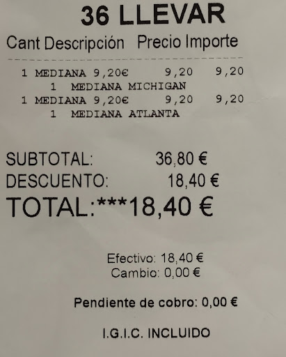 Read moreLa comida muy bien, pero el personal de pena, he pedido a domicilio y cuando llega el chico, como el ascensor está averiado y era un cuarto piso, me toca para que baje a buscar el pedido, le dije que el pedido es a domicilio y no entrega a pie de calle, y me dice que son las normas Covid (que solo afectan si no tienes ascensor ya que la semana anterior no me paso), le digo que en ese caso se las lleve que llamo a la competencia, ya no por no bajar, sino por engañar, bueno pues el chico después de 5 minutos me vuelve a tocar que me está esperando y le vuelvo a decir que ya le dije que no iba a bajar y que daba por hecho que ya se había ido, que si no las iba a subir se las llevara. Pues de nuevo 5 minutos después me llaman desde el local que tengo al chico en la puerta del edificio y que son las normas que siempre ha sido así (la semana anterior y las 50 veces que pedí antes no lo fue…). Más profesionalidad para sus empleados, engañar al cliente, y antes incluso de pagar no tiene mucho sentido, yo no perdí nada y ustedes 3 pizzas y un cliente. Ah por cierto…el de schamman si me lo llevo a la puerta de casa, una hora después del pedido que les...