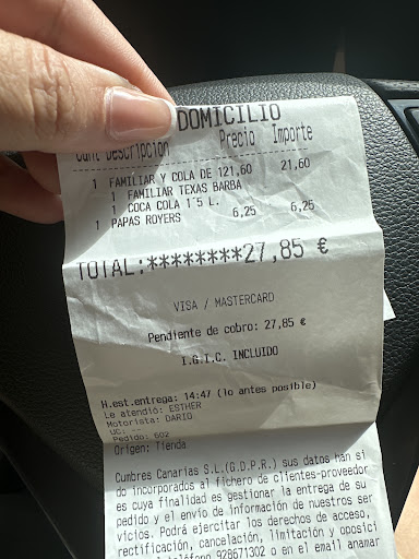 Read moreMí hijo es el que solicitaba las pizzas de este sitio y yo o mi mujer se las recogíamos, pero ya no más, el es alérgico y le mandaban las pizzas con cosas para las que tiene alergia, es más realizaba los encargos a través de terceros como Uber Eats, con reparto a domicilio por parte de pizza Royer's, traían cosas de menos, como los refrescos que mí hijo encargaba para él, y por más que se le reclamaron a pizza Royer's, no se los trajeron, delegando siempre la culpa a Uber, porque según ellos utilizaban otro software y ellos no veían todo el pedido, porque usaban un software distinto, a lo que les expliqué que el fallo era de ellos, porque mí hijo siempre usaba el servicio de Uber Eats por la garantía de reclamación en caso de fallo por parte del proveedor al que se le encargaba, por otro lado al reclamar a uno de los supuestos encargados que trajo el pedido último, me indicó a mi que tenía que le dijera a mí hijo que tenía que encargarle los pedidos a ellos directamente, con toda la mala intención, para No Atender Las Reclamaciones de cosas pedidas, pagadas y no entregadas ni servidas. Sinceramente No Más Gracias. Pésimos a...