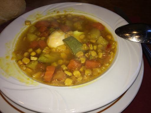 El menú de ayer fue para mi 2 platos primeros de crema de verduras (con toque de atención de una de sus camareras a Fernando el camarero que solo hacia su trabajo) Bistec a la casera (más bien con ajo perejil, pero estaba bueno también) Postre mus de turrón insípido y sin sabor.