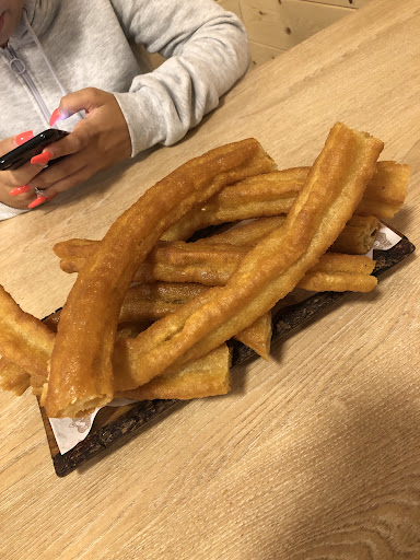Read moreLos bocadillos de pata con pan de campo de ese local están riquísimos y los precios más o menos son los que te sueles encontrar, así que merece la pena. Nosotros en esta oportunidad fuimos un domingo, para ser exactos a las 17:43, al llegar estaba cerrado pero había gente en cola esperando (ya que tendría que estar abierto 17:30). En un momento una clienta le comenta al servicio por una abertura que hay gente esperando entre risas. La cual ella contesta que sigan esperando de muy mal modo. Todas las personas que estábamos en la fila nos quedamos un poco descoladas, no por tener que esperar sino más bien por los modales. Al entrar ya se notaba bastante agobias las dos chicas que estaban al frente esa tarde, cansadas, lo cual era bastante entendible. Entre ambas tenían que: hacer bocatas, sacar churros, preparar café, chocolate, llevar a la mesa, cobrar, ir recogiendo, etc . Una de las clientas le comenta lo sucedido y que no le parecieron las formas de responder ya que su horario era abrir 17:30 hs, ahí otra discusión. La camarera no entendía por qué era la crítica. Para no extenderme demasiado, un servicio cansado, estresado, quemado no va contento a su trabajo. Acá lo vimos y muchas veces se refleja en el trato a la clientela. El cliente no siempre tiene la razón, así como tampoco pueden pagar por el estrés...