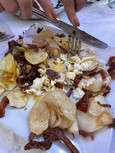 Food, once called spanish omlette then favourite, now called broken eggs, were a broken dreams for me.. once crispy, now soggy potatoes, with varely any egg and some sausage.