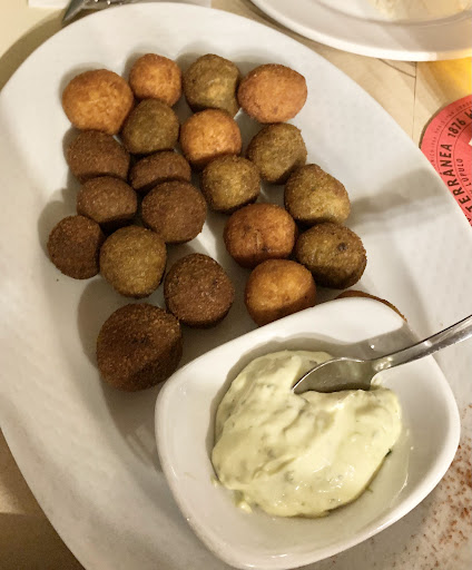 CROQUETAS DE ESPINACAS, MORCILLAS Y JAMÓN: Brutales!! Repito!! Cremositas y potentes de sabor. Ración generosa. Un acierto.