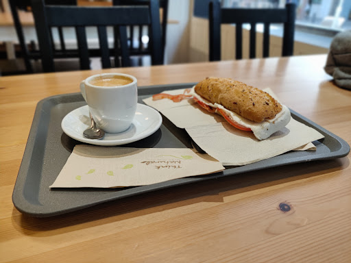 Estábamos consumiendo a eso de las 19;00 en el local, 4 empanadillas muy buenas por cierto, frapelatte,café con leche,tarta de queso con limón y varias cosas mas y nos llevamos varios panes. Bueno éramos varias personas consumiendo en local,a esto que voy a pasar al baño con mi hija pequeña a lavarse las manos y una de las empleadas de pelo negro,medio corto y delgada sale del obrador y me para, nos deniega el paso, le dije que solo se iba a lavar las manos la niña y con cara no muy convencida dice ....bueno pasa al que está al fondo. A esto que salimos y coloca una planta en la puerta para que nadie pase,pero al esperar yo por mi pan, que quedaban 5 min y ya habíamos acabado en mesa,espero fuera del local,entro a buscarlo y una chica que se iba a llevar pan pide acceso al baño y le dejan pasar,me queje a la chica morena que por cierto nos atendió muy bien..eso está feo,y más si consumes y gastas más dinero que comprando dos panes...