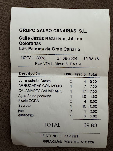 Read moreÉramos 3 personas, 1° vez que íbamos,y ésta sitio y no fue una buena experiencia pa ninguno: Para empezar, cuando llegamos, sólo 2 camarer@s y habían pocas mesas y no todas ocupadas (Mesa grande q quedaban por llegar personas(q llegaron más tarde q nosotros),el resto eran d 2-3-4 personas,q este último llegó antes q nosotros). Para cogernos nota de la bebida una espera, para la comida otro ratazo más. La comida nos decidimos por croquetas ibéricas (estaban muy buenas), solomillo con papas panaderas (sinceramente no recomendable ya que estaban algo duros, dudamos de si era o no solomillo), y arroz ibérica (que por persona eran 30€, muy caro pero bueno). Y pan cn alioli (según ellos pq ni ajo ni perejil ni sabor a eso tenia, parecía d la marca "Ligeresa",casi ni se tocó) y aceite con sal,q eso sí estaba bueno. El pan lo tuvimos q pedir por 2° vez pq desde q lo pedimos cnd no cogió la nota no lo habían traído.... Por cada plato tardaron un montón (SÓLO ERAN 3 PLATOS PA 3 PERSONAS Y EN OTRAS MEDAS Y LA GRANDE,S NO PARABA DE LLEGAR PLATOS!!!). Pero el arroz ibérico no llegaba....esperamos hora y media desde que se pidió,le volvimos a preguntar a ls camarer@s y nos dijeron q sólo le quedaban 3 minutos....en serio??....se nos quitó el hambre de tanta espera..... Nos dieron un chupito por lo ocurrido pero no con eso se arregla, pero si aceptamos las disculpas. DECEPCIONANTE Y NADA RECOMENDABLE!! LO SIENTO PERO...