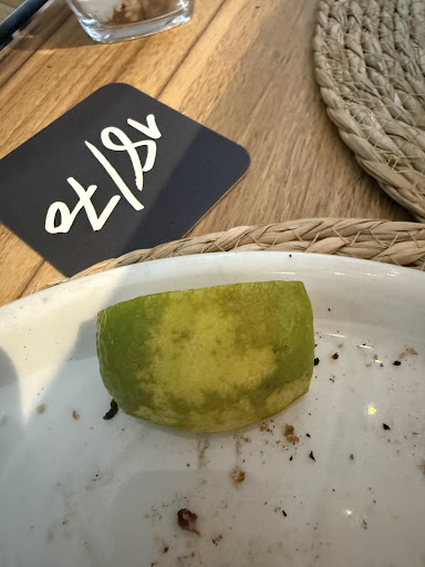 The bruschetta took about 30 to 40 minutes to arrive and was nothing special, just some toasted bread with tomato and some molten mozzarella. The children's menu said on the menu: 'pasta pomodoro, coteletto alla milanese, patatas fritas ('fries' on the English menu) and a drink of choice'. We were never given the choice between one or another but received just the coteletto, soaking in grease and on the edge of being burnt, with some potato cubes. Not the fries which we promised our 4 year old... No sauce as well, the extra ordered mayonaise took about 15 minutes to arrive. The lime part looked as if it was grated first for whatever other dish and then just thrown on the plate.