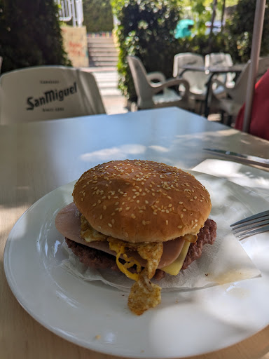 Read moreEntre al bar , desde primera vista no tiene ambiente por la cantidad de humo que hay asi que tuve que comer dentro. Despues de 15 minutos pudimos pedir . Estuvimos 1hora sentados . Solo nos trajeron unas patatas despues de 50 minutos .Nos dijeron que habia mucha gente, pero cuando nosotros pedimos no habia casi nadie.La hamburguesa no tenia nada especial . La verdad ni siquiera estaba bueno el pan . Las patatas bravas no eran nada especial y no llevaban casi nada de salsa . Las patatas normales son lo unico que se salvan , no estaban malas . En general...