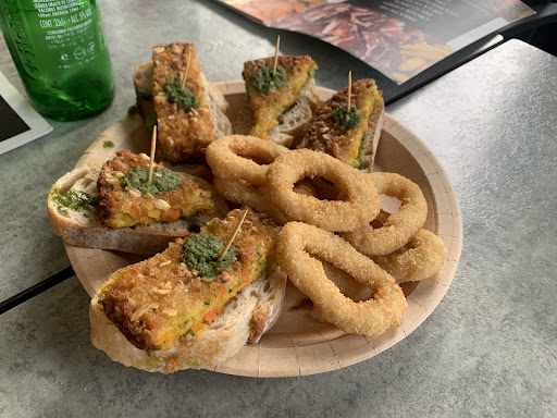 Es, como su nombre indica, un kiosko y, aunque tiene zona interior, su mayor atractivo es la terraza, que da a un parque en el que los niños pueden estar jugando. Ese día el restaurante estaba lleno, tanto dentro como fuera, a pesar del frío. No obstante, aunque estaban a tope y faltaban mesas y sillas, tenían una zona cerrada al público.