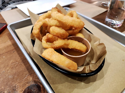 Los aros de cebolla y la hamburguesa estaban buenos, sin llegar a ser espectaculares pero acorde al precio. El perrito vegano sí me gustó especialmente, lo repetiría. Las patatas que acompañaban son muy normalitas, deberían mejorar este punto en mi opinión.